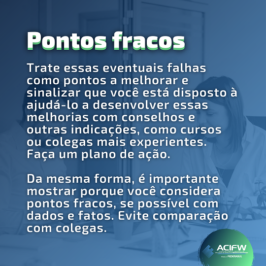 Seja positivo ou negativo, o feedback deve ser feito regularmente, permitindo: