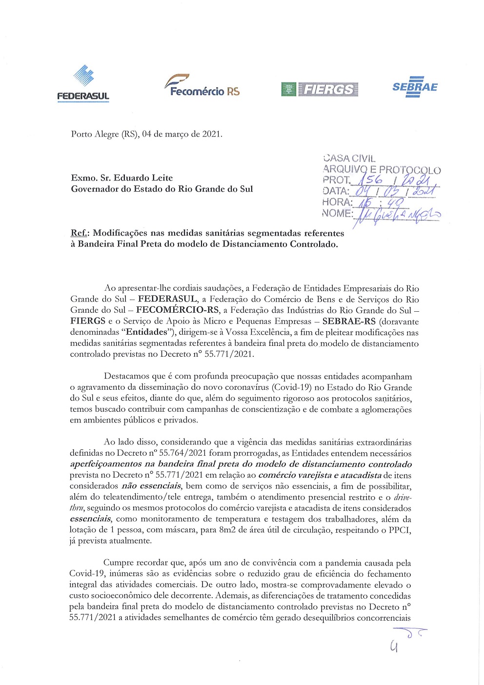 ?Entidades Empresariais pedem modificações na bandeira preta ao Governador do RS Eduardo Leite