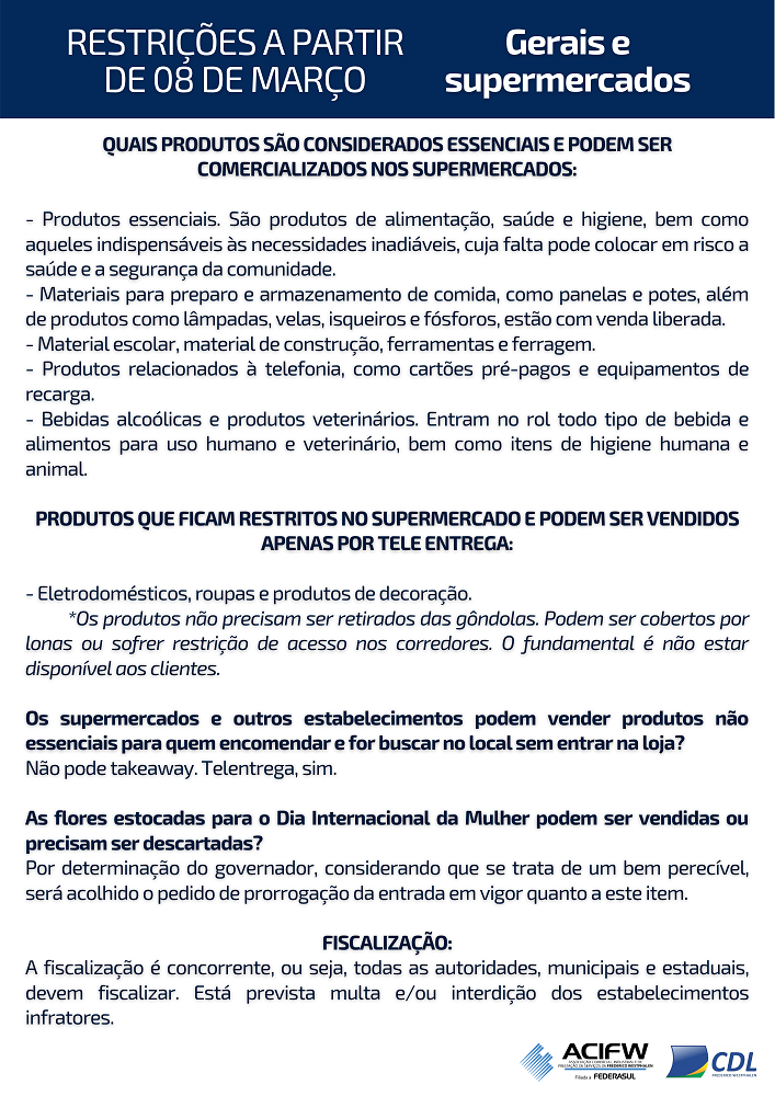 Na última sexta-feira, dia 05, o Governo do RS decretou novas medidas de restrição. Dentre elas está a proibição da venda de itens não essenciais em supermercados, que tem como objetivo reduzir o movimento nos locais e evitar uma concorrência injusta com demais lojistas que estão proibidos de abrir as portas.