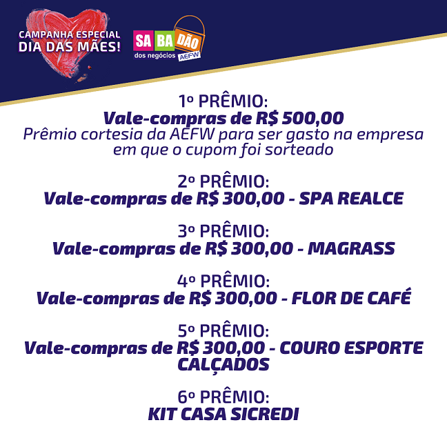 *Prêmio cortesia da AEFW para ser gasto na empresa em que o cupom for sorteado.