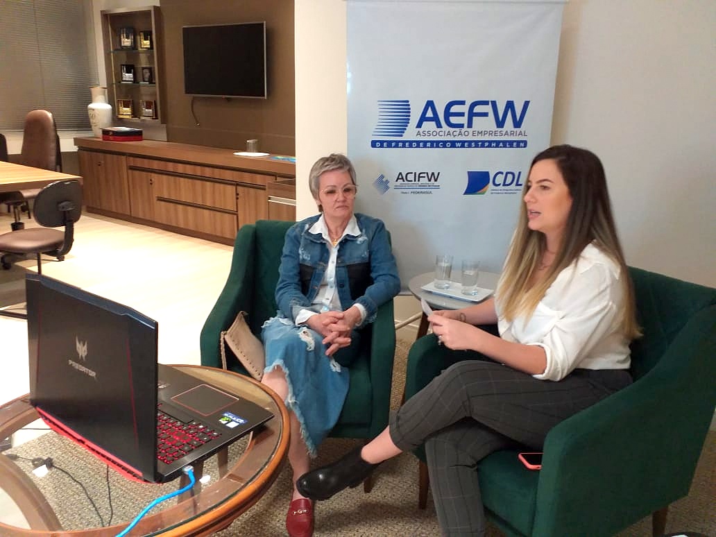 A primeira live tratou sobre o Dia dos Namorados e aconteceu através das redes sociais da AEFW e está gravada no Facebook e Instagram (@ae.fred). Participaram do encontro online a diretora de comércio da AEFW e proprietária da Flor de Café Store, Gabriella Meyer, e da proprietária do Sanpa Restaurante, Sandra Mara Bortolossi. As empresárias compartilharam estratégias, experiências e dicas para diversos tipos de negócios, como lojas, restaurantes, salões de beleza, dentre outros.
