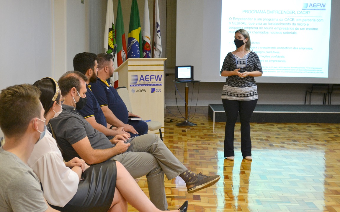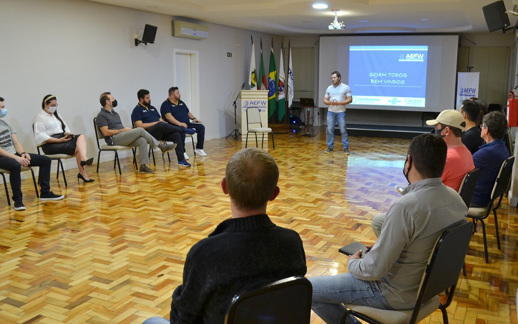 Na sequência, a consultora de núcleos da AEFW, Aline Galhardo, explicou como funciona a metodologia dentro de um Núcleo Setorial, que acontece através do Programa Empreender, da Confederação das Associações Comerciais e Empresariais do Brasil (CACB) em parceria com o Sebrae. O Diretor para Assuntos Públicos e Municipais, Mauro Cesar Rosa, seguiu com o encontro tratando sobre a importância da visão estratégica dentro do grupo e o pensamento coletivo para fortalecimento de todos os nucleados, através da troca de experiências e conhecimentos sobre ferramentas úteis para as empresas, redução de custos com matéria prima, visibilidade, força política, dentre outros pontos.