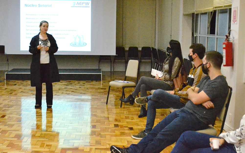 O grupo foi recepcionado pela presidente da Associação, Patricia Cerutti, dos diretores de comércio, Gabriella Meyer e Renato Bambini e da consultora de núcleos da AEFW, Aline Galhardo, que explicou como funciona a metodologia dentro de um Núcleo Setorial, que acontece através do Programa Empreender, da Confederação das Associações Comerciais e Empresariais do Brasil (CACB) em parceria com o Sebrae.