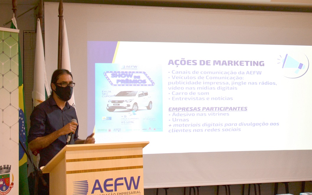 A noite da segunda-feira, 27, foi marcada pelo coquetel de lançamento da Campanha Show de Prêmios 2021, que contou com a presença de membros da diretoria, prefeitura, patrocinadores e apoiadores. Durante o evento, o coordenador da campanha e vice-presidente da AEFW, Juliano Razia Del Paulo, apresentou os detalhes da premiação, da dinâmica e houve, ainda, a comercialização dos kits para as empresas, com bônus de cupons para quem participou do evento. Ainda, durante a tarde, foi realizada uma carreata para anunciar o início da campanha.