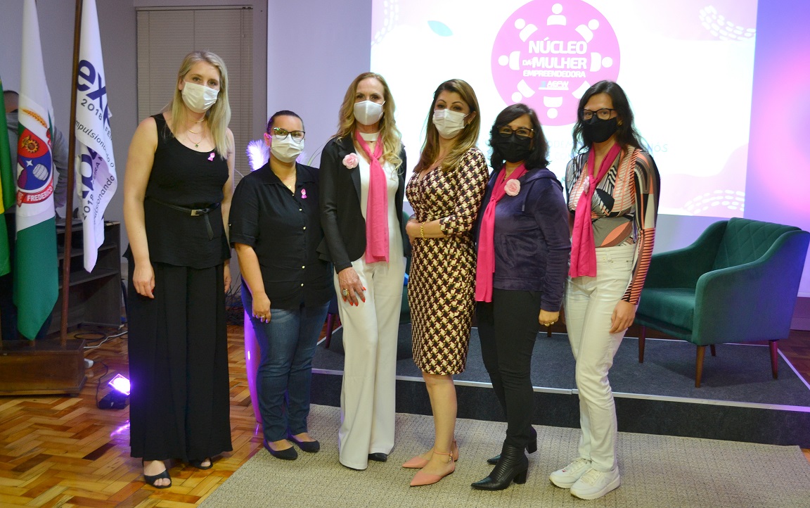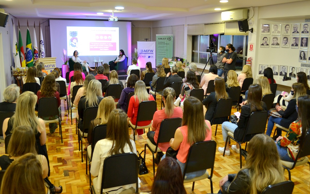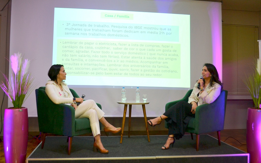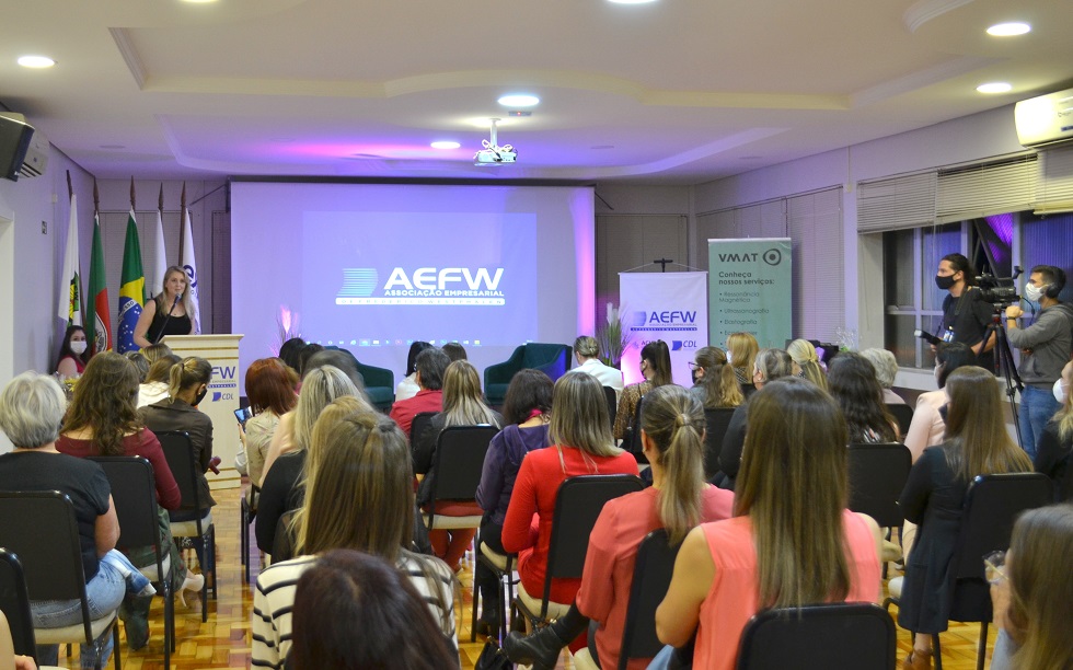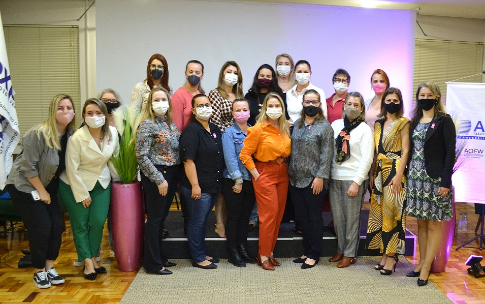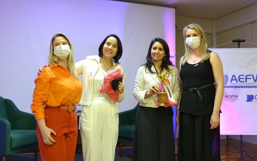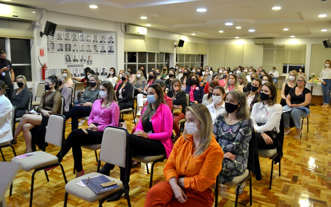 Para marcar a programação do Outubro Rosa, mês de conscientização sobre o câncer de mama, o Núcleo da Mulher Empreendedora da Associação Empresarial ACI/CDL, com a parceria da empresa V-MAT, promoveu um evento na noite desta quinta-feira, 07, no salão nobre da entidade. As convidadas da noite foram a médica psiquiatra Joana Letícia Carvalho Cordeiro e a psicóloga e psicoterapeuta, Rosane Ribas dos Santos Severiano, que trataram sobre saúde mental feminina. O foco da palestra foram os desafios enfrentados durante a pandemia, em que pesquisas apontam que as mulheres foram mais afetadas emocionalmente em razão da grande sobrecarga pela conciliação de diversos fatores: trabalho, carreira, casa, família, maternidade, vida conjugal, dentre outros. As palestrantes apresentaram dados científicos e explicaram sobre o porquê a maioria das mulheres acaba fazendo jornadas triplas e como combater o mito da mulher multitarefas, em benefício da saúde mental.