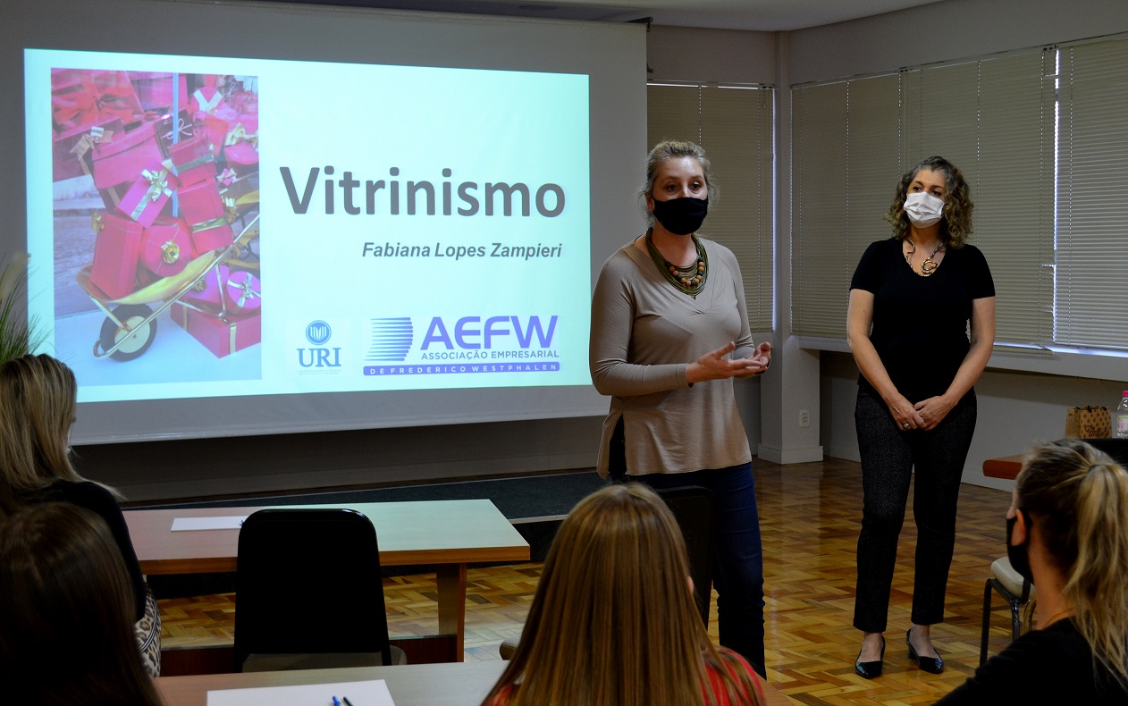 Na última quinta-feira, 21, foi realizado o curso de capacitação em vitrinismo, ministrado pela artista plástica, arquiteta e professora do curso de Arquitetura e Urbanismo da URI/FW, Me. Fabiana Lopes Zampieri, no salão nobre da Associação Empresarial ACI/CDL de FW. O curso, voltado para ornamentação e decoração de vitrines, teve como foco o Frederico em Luz, atendendo demandas apresentadas em reuniões na entidade pelo Núcleo de Desenvolvimento do Comércio. Segundo Fabiana, “uma vitrine bem planejada aumenta o número de clientes interessados nos produtos, facilita a visualização da peça e a idealização no imaginário do consumidor, sendo assim, responsável por quase 70% das vendas das lojas”.
