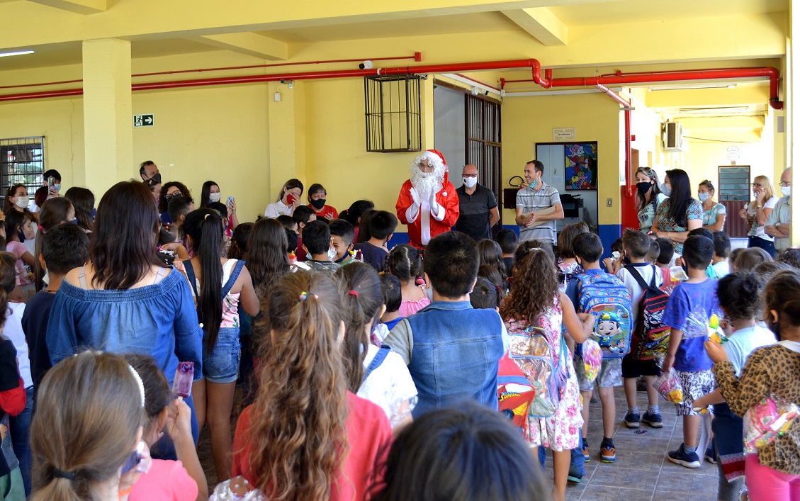 Durante a última quinta-feira, 09, a Associação Empresarial ACI/CDL realizou uma ação solidária de Natal com crianças do ensino fundamental das escolas do município. A ação contou com a presença de membros da diretoria da entidade e representantes do Rotary Clube Barril, Rotaract e Interact, que visitaram as escolas Vinte e Um de Abril, Giusto Damo e, também, no colégio Irmã Odila Lehnen. As crianças das turmas da manhã e da tarde foram surpreendidas com a visita do Papai Noel que conversou com os pequenos e distribuiu doces e abraços.