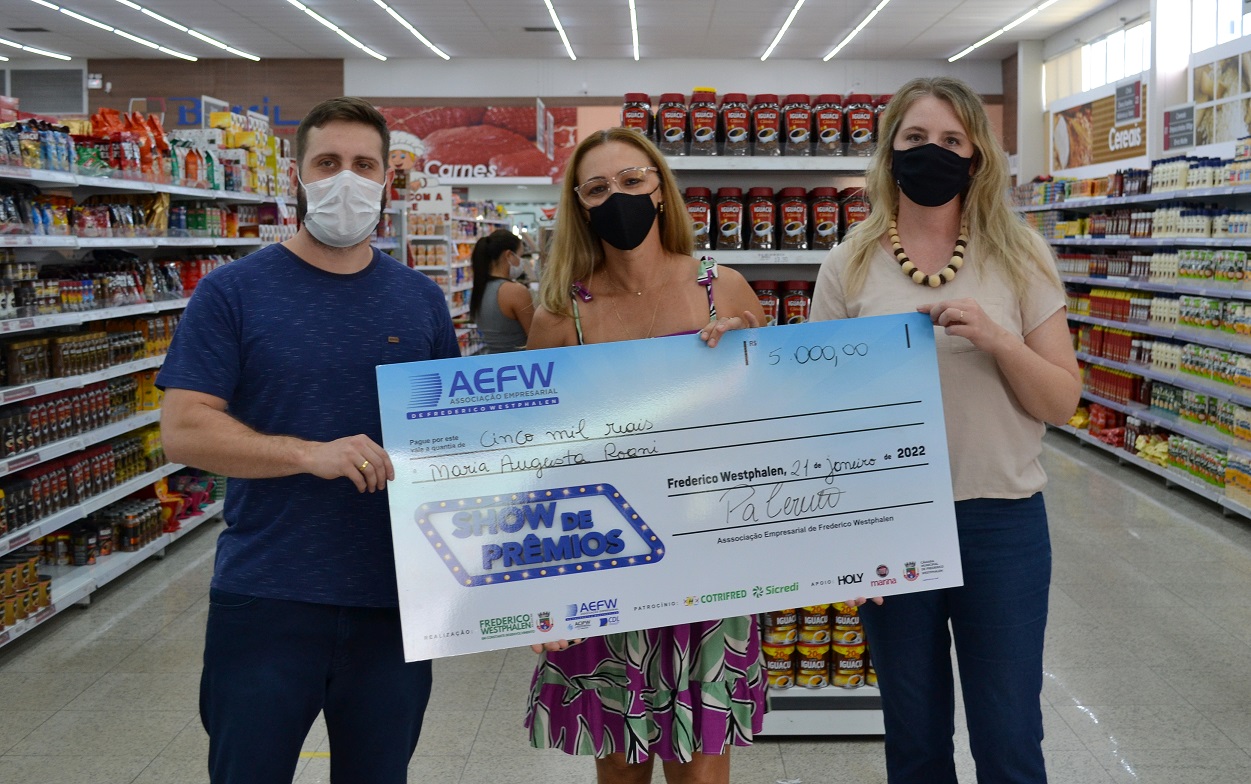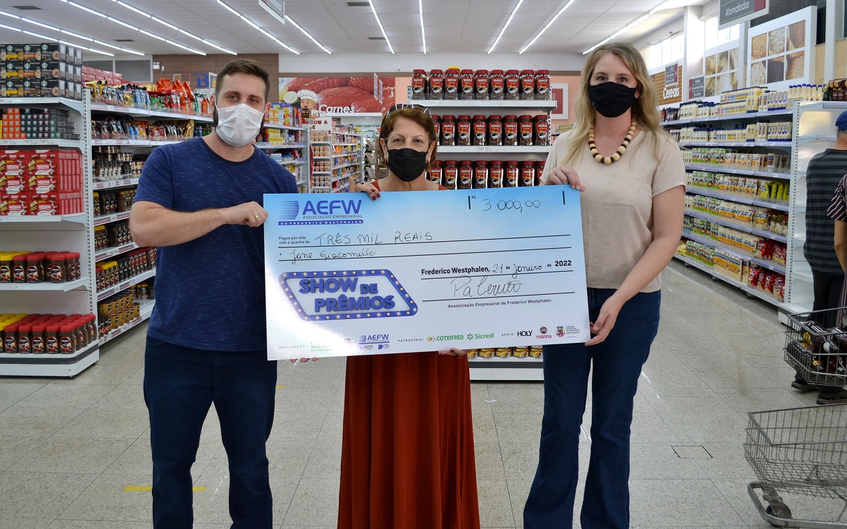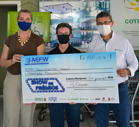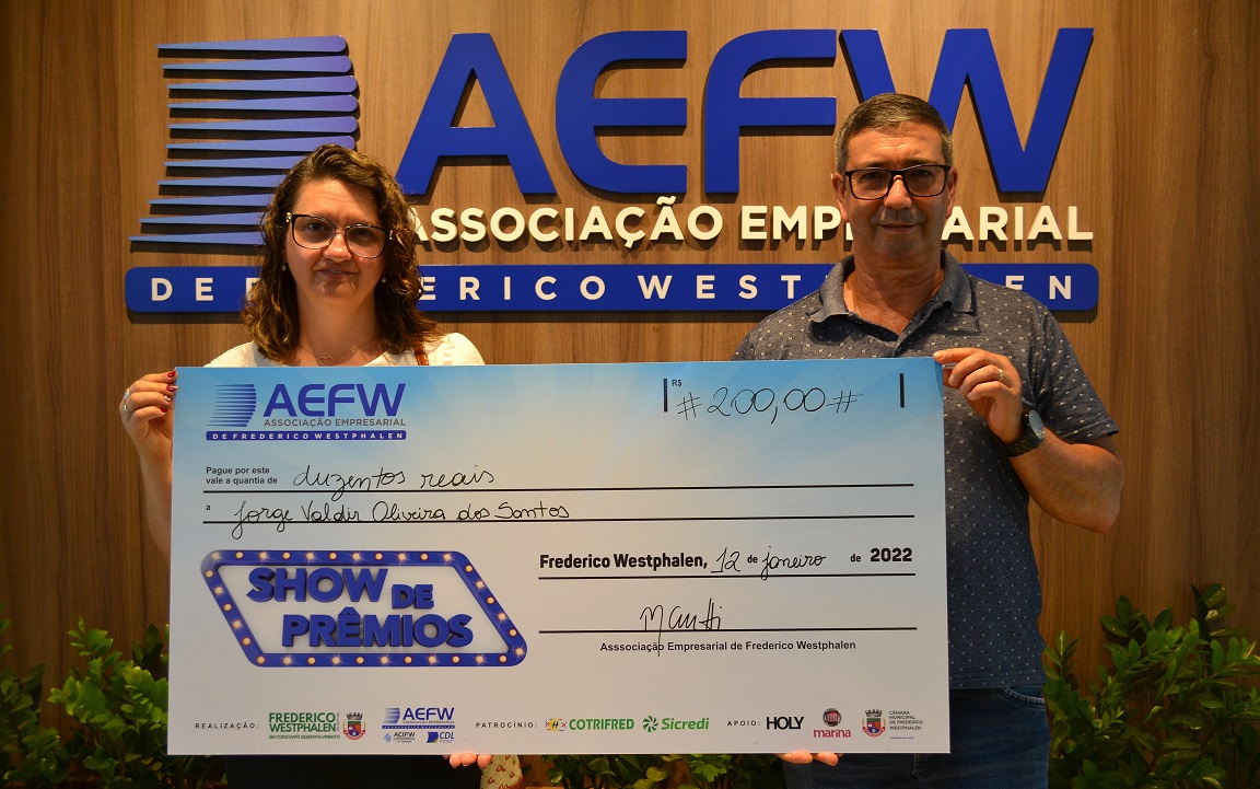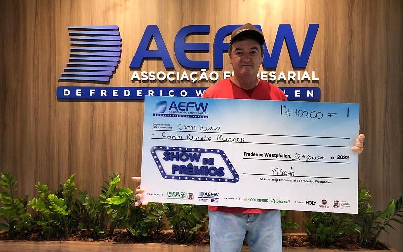 Nilton César Mantovani recebeu a premiação no Supermercado Barril, onde comprou e recebeu o cupom que foi sorteado no início do ano. No momento da entrega estavam presentes a presidente da AEFW, Patrícia Cerutti, o prefeito José Panosso, o sócio-proprietário do mercado Guilherme Argenta, representantes das empresas parceiras, além do secretário municipal de Indústria, Comércio e Turismo, Alessandro Molossi.