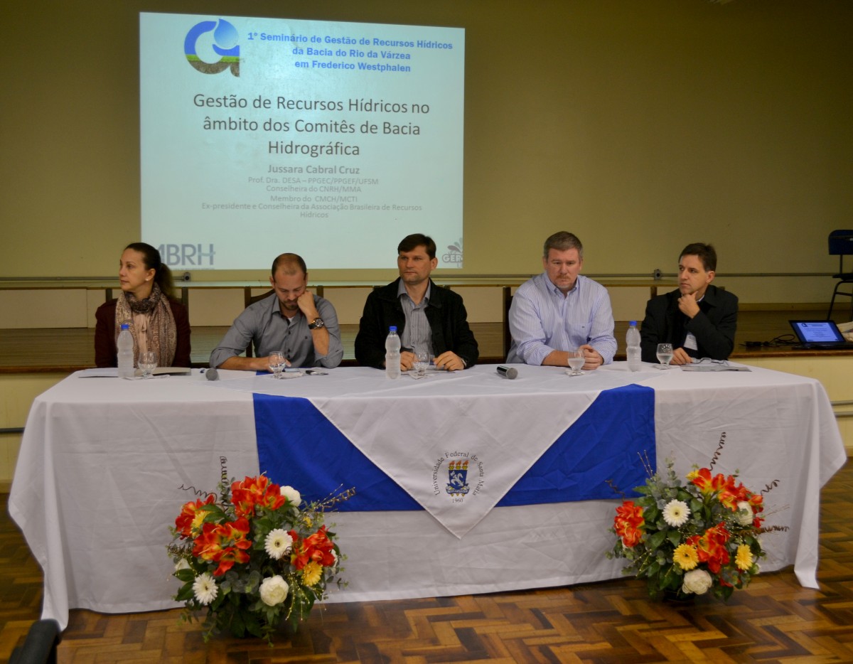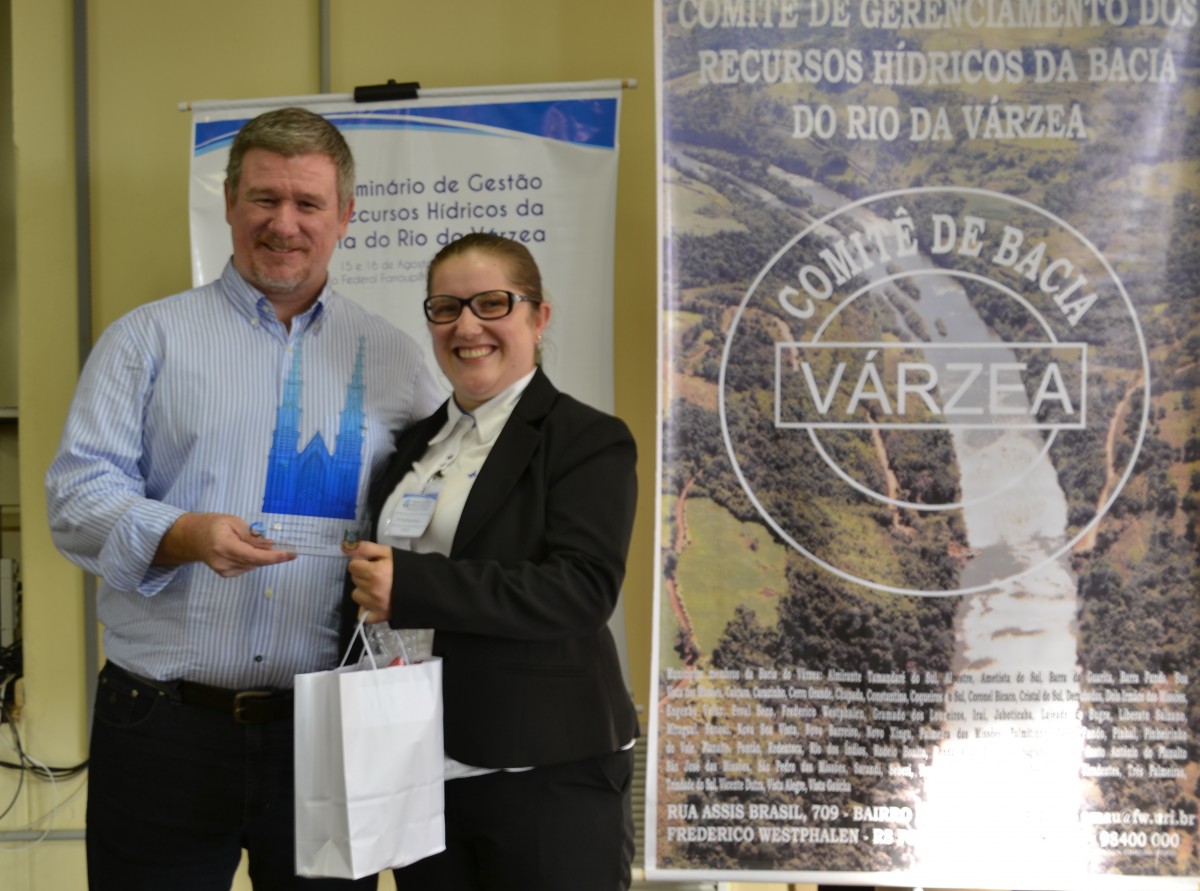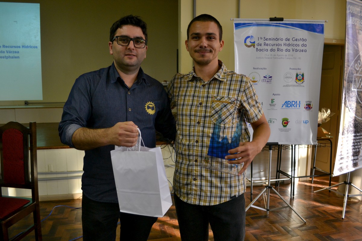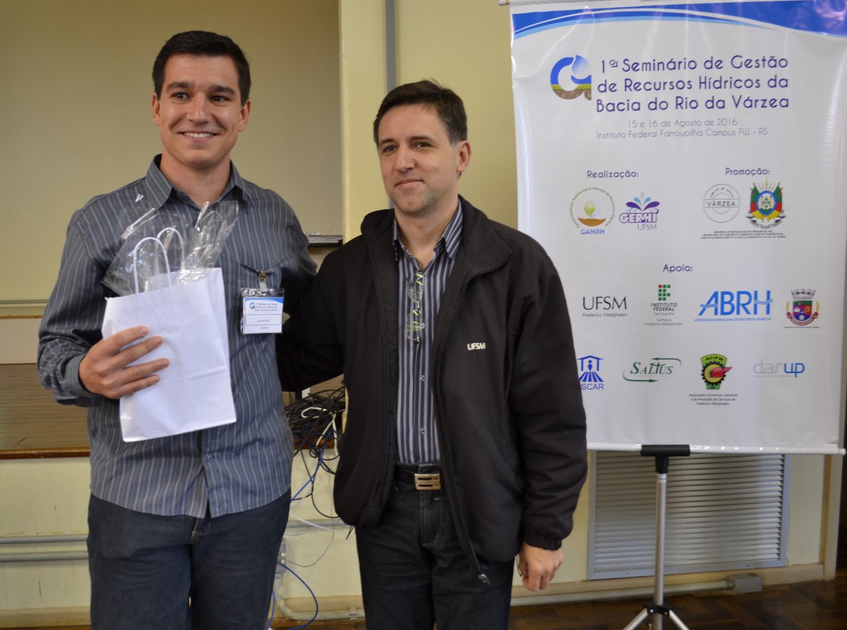 O 1º Seminário de Gestão de Recursos Hídricos acontece é uma realização do grupo de pesquisa da UFSM-FW Gerenciamento Ambiental e Manejo de Recursos Hídricos e do grupo Gestão de Recursos Hídricos, com promoção do Governo do Estado e Comitê de Gerenciamento da Bacia do Rio da Várzea e apoio da Universidade Federal de Santa Maria campus Frederico Westphalen (UFSM-FW), Instituto Federal Farroupilha (IFF), Associação Brasileira de Recursos Hídricos (ABRH), Secretaria do Meio Ambiente e Desenvolvimento Sustentável de Frederico Westphalen, Emater-Ascar, Saltus Consultoria Ambiental e Florestal, Associação Comercial Industrial e de Prestação de Serviços de Frederico Westphalen (ACIFW), Bakof Tec e Darup Comunicação Integrada.