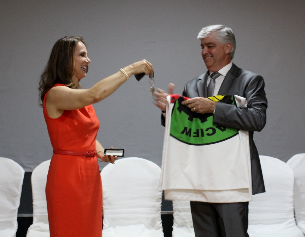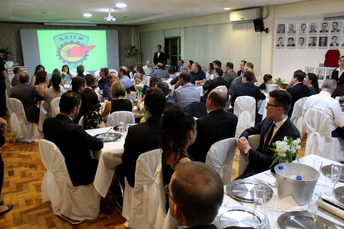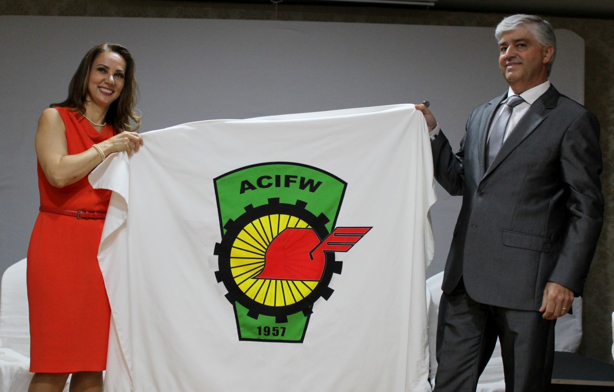 Em jantar comemorativo, realizado na noite de ontem, 9, a nova diretoria da Associação Comercial, Industrial e de Prestação de Serviços de Frederico Westphalen (ACIFW) foi oficialmente empossada. A festividade contou com a presença de autoridades e empresários do município, membros da diretoria e associados da entidade. Na ocasião, Paulo Dalmolin, presidente da ACIFW na gestão 2017-2018, recebeu das mãos da ex-presidente Simônia Gonçalves de Oliveira a bandeira e as chaves da entidade representando simbolicamente a passagem da diretoria.