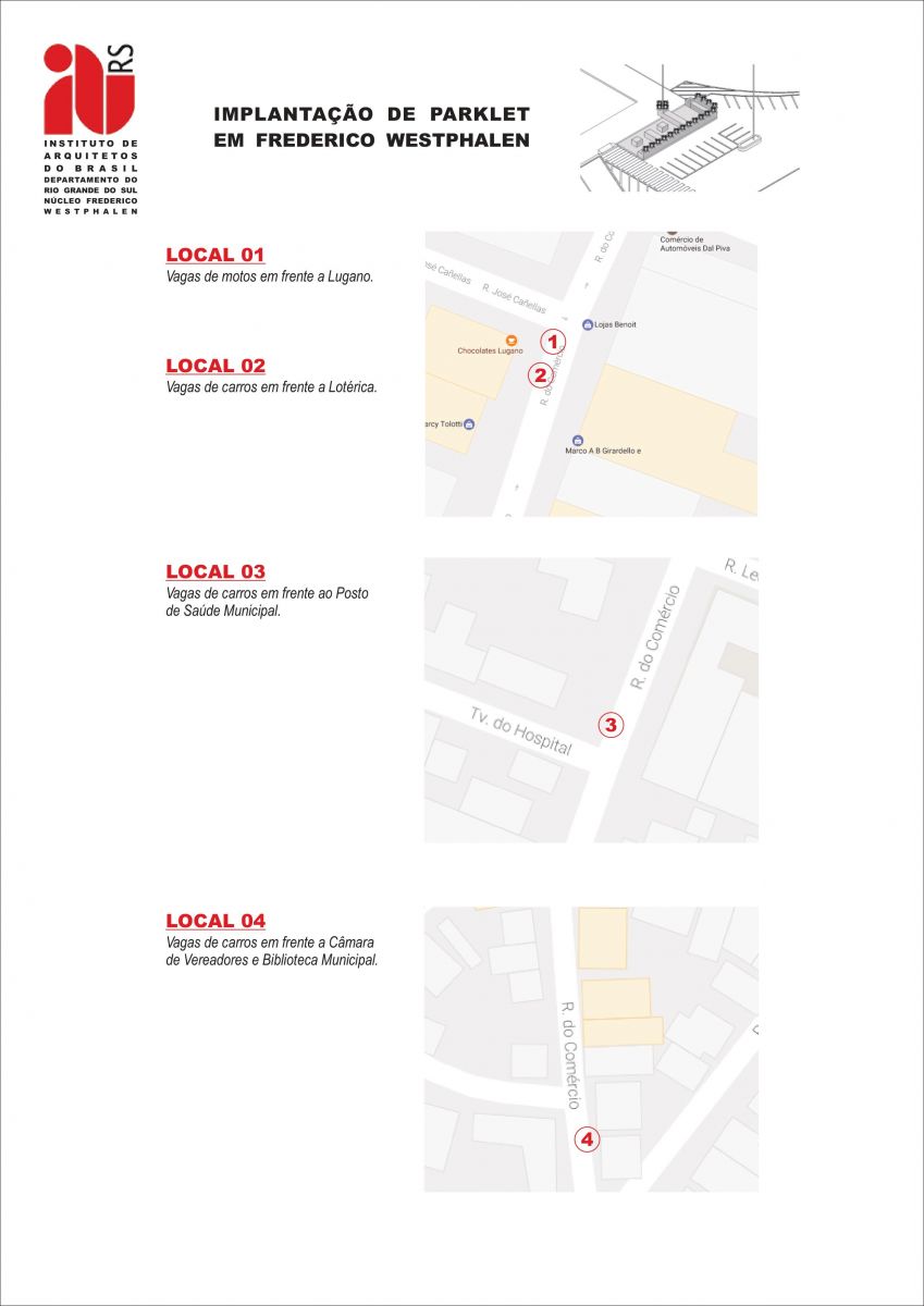 Mas antes de dar continuidade ao projeto – que você confere abaixo – o IAB-RS Núcleo FW quer saber a sua opinião sobre em quais locais os Parklets deveriam ser instalados em Frederico Westphalen, as opções são: