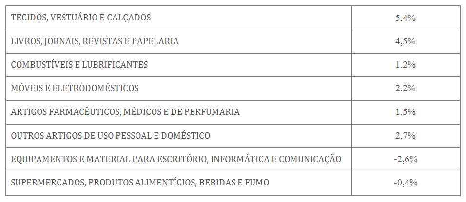 Na passagem de maio para junho, seis das oito atividades do comércio varejista tiveram alta no volume de vendas: