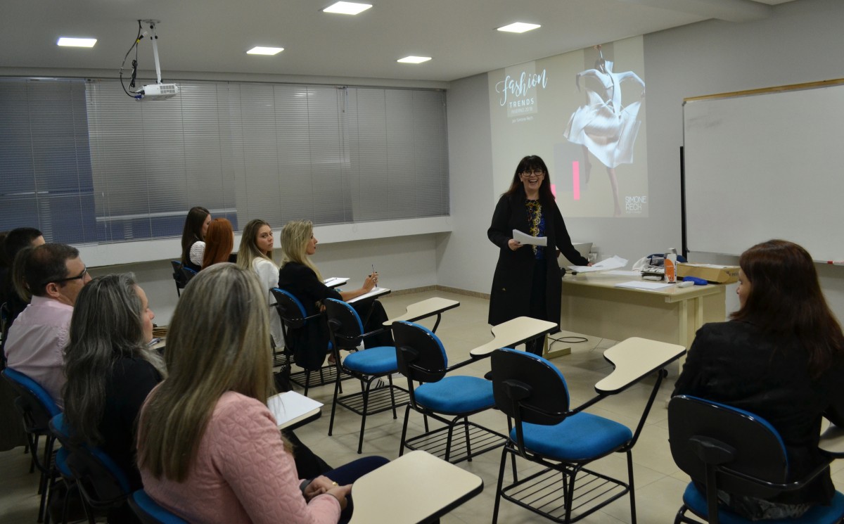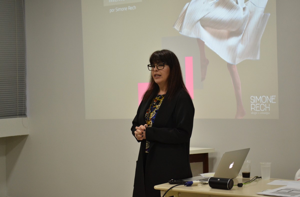 O evento foi ministrado por Simone Rech, que é Consultora de Design, Inovação e Marketing na empresa Sebrae/RS e Diretora Criativa na empresa Simone Rech Design + Estratégia. A consultora é especialista em Design Estratégico e atua há mais de 20 anos nas áreas de pesquisa, desenvolvimento de produto e soluções criativas para negócios de moda e design.