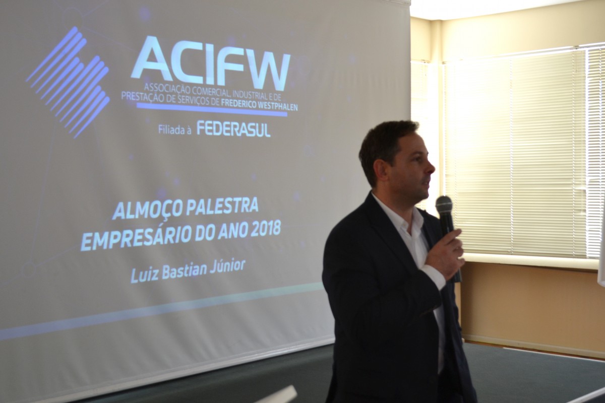 Júnior é natural de Iraí (RS), graduado em informática e, há mais de 15 anos está no ramo da internet e telecomunicações, com a empresa Tchê Turbo Telecom, desde 2003, e Brphonia, desde 2012. Em sua fala, ele destacou a busca constante por novas tecnologias para a região, os produtos e serviços que desenvolve no município, e ao final da sua fala, respondeu perguntas relacionadas à sua experiência empresarial. Júnior parabenizou a ACIFW pela iniciativa, pois, segundo ele, “encontros como este oportunizam que as empresas se conheçam, troquem experiências e potencializem negócios”. Durante o evento, houve, ainda, a entronização do quadro do empresário na galeria de Empresários do Ano da entidade.