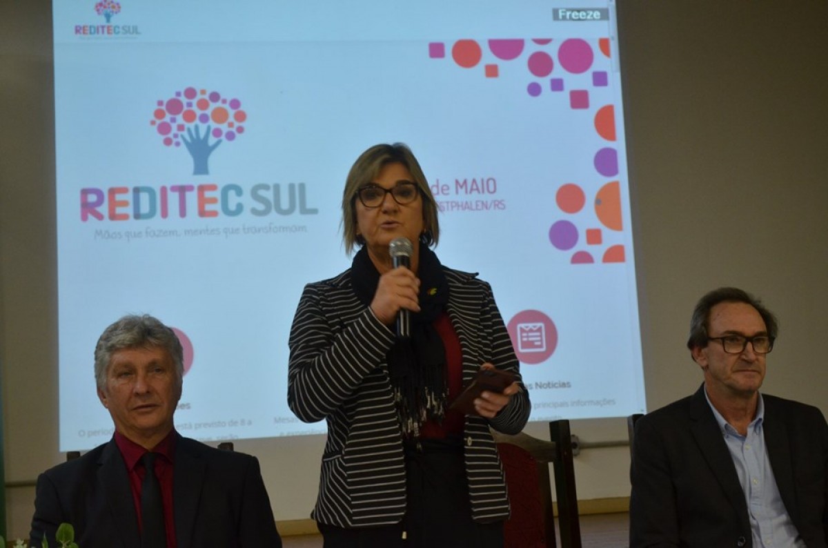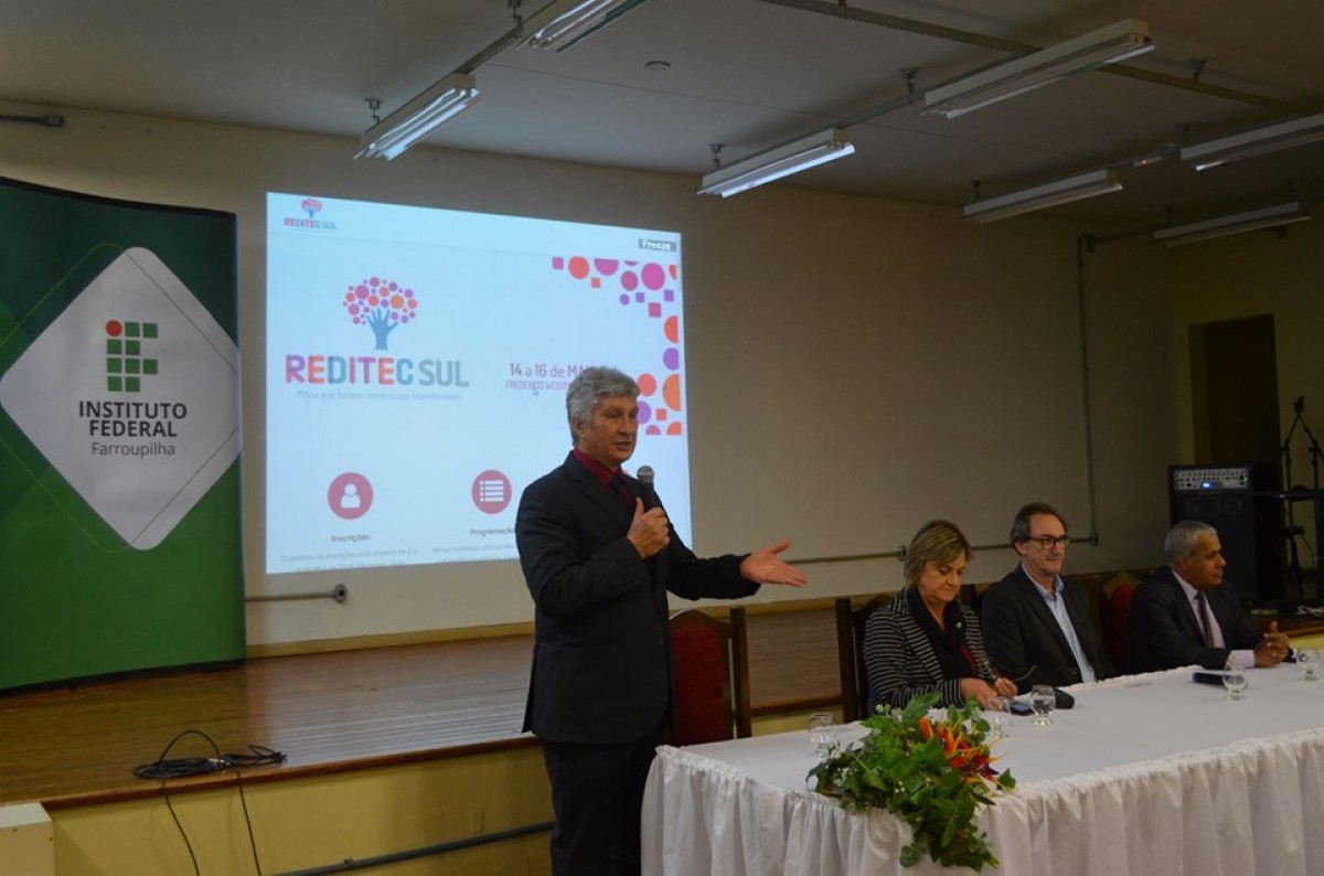 O Instituto Federal de Educação, Ciência e Tecnologia Farroupilha, Campus Frederico Westphalen é sede da segunda edição do Reditec Sul, que acontece entre os dias 14 e 16 de maio. O evento, que reúne dirigentes dos Institutos Federais de Educação da Região Sul do País, conta com a presença de mais de uma centena de pessoas para o debate de importantes temas com foco no fortalecimento da rede de instituições que oferecem ensino profissionalizante gratuito, com o tema “Mãos que fazem, mentes que transformam: 110 anos da educação profissional no Brasil”.
