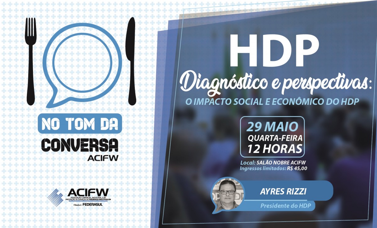 O presidente da ACIFW, Ramir Severiano, comenta que “trazer o HDP como pauta do No Tom da Conversa é dar visibilidade a uma das maiores instituições do município e debater pontos importantes e de interesse não só da classe empresarial, que representamos, como de toda a sociedade. Nosso convite é para que a comunidade participe deste e das outras edições do evento, pois estamos oportunizando momentos importantes de debate e compartilhamento de experiências”.