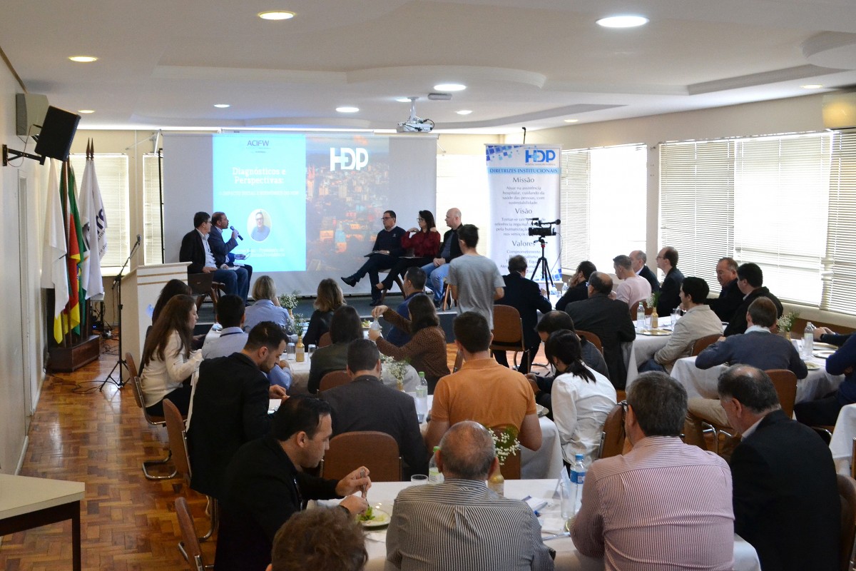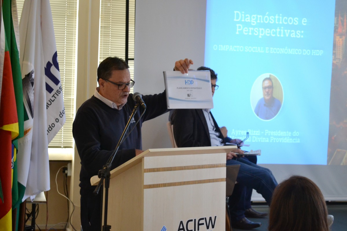 A segunda edição do evento No Tom da Conversa, promovido pela Associação Comercial, Industrial e de Prestação de Serviço de Frederico Westphalen (ACIFW), teve como tema central o Hospital Divina Providência (HDP). Na conversa, mediada pelo assessor jurídico da ACIFW, Rogério Vargas dos Santos, estiveram presentes o presidente do hospital, Ayres Rizzi, a diretora geral, Roselei Enderle, o conselheiro fiscal, José Luis Haubert, e o tesoureiro, Carlos Alberto Pinheiro.