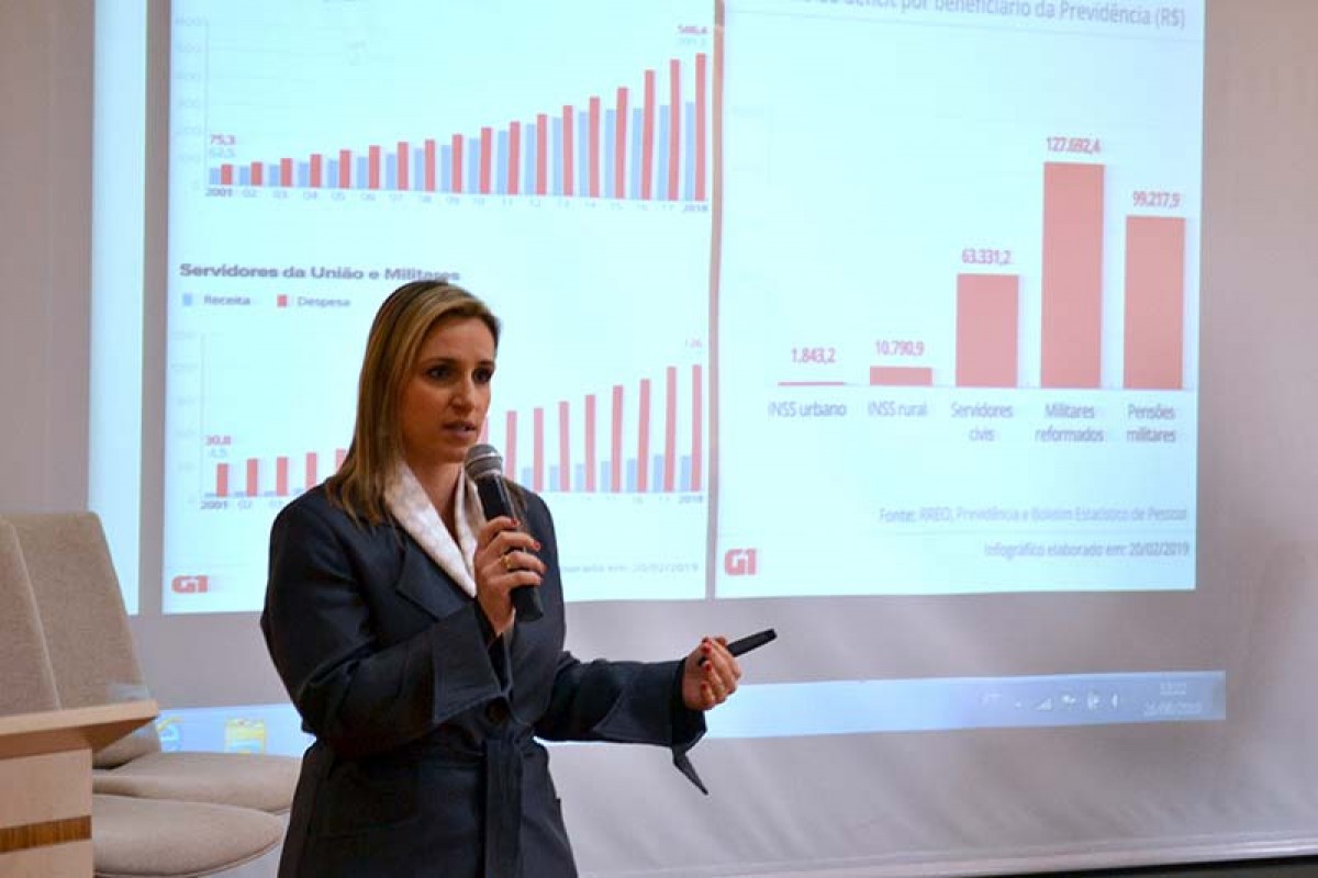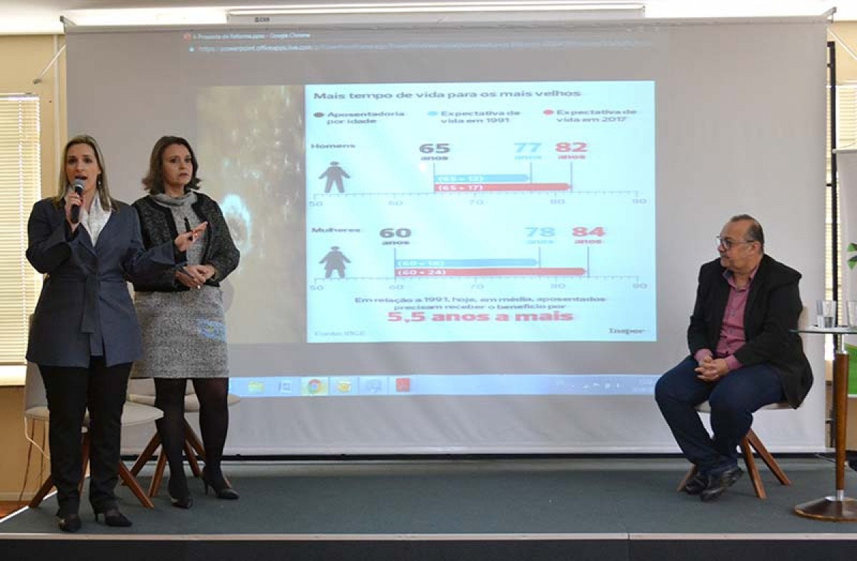 A Reforma da Previdência foi o tema do almoço-palestra, que contou com a presença das advogadas Viviane Garbini e Dieini Dias, que vieram à ACIFW através do apoio da Federasul. Durante a palestra, as especialistas pontuaram as principais mudanças da proposta, destacando as modificações realizadas no texto até hoje. Durante o evento, as especialistas comentaram sobre a idade mínima e tempo de contribuição, alíquotas progressivas, regras de transição, aposentadoria rural e militar, regime de capitalização, dentre outros pontos.