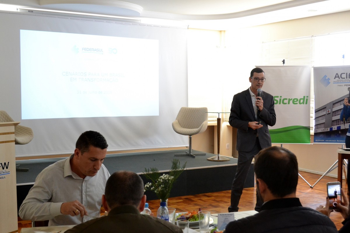 A ACIFW promoveu a quarta edição do No Tom da Conversa ao meio dia desta quarta-feira, 31, na entidade. O evento reuniu cerca de 100 pessoas no salão nobre da Associação, onde autoridades, empresários e associados assistiram a palestra do empresário e sócio da Bateleur Assessoria Financeira e professor da ESPM, Ernani Carvalho da Costa Neto, que falou sobre os principais acontecimentos internacionais e os desdobramentos na economia do Brasil. Ernani falou, ainda, sobre o impacto das Reformas da Previdência e Tributária, das dificuldades fiscais do setor público do estado do Rio Grande do Sul, dentre outros pontos importantes sobre a economia no país.