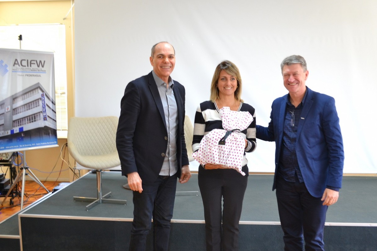 A ACIFW recebeu nesta sexta-feira, 13, a empresária e presidente da Federação das Entidades Empresariais do Rio Grande do Sul (Federasul), Simone Leite. Simone participou da quinta edição do almoço-palestra No Tom da Conversa, que reuniu autoridades, empresários e os presidentes das ACIs de Ametista do Sul, Planalto, Nonoai, Alpestre, Rodeio Bonito, Três de Maios e Erval Seco que, assim como a ACIFW, são filiadas à Federasul.