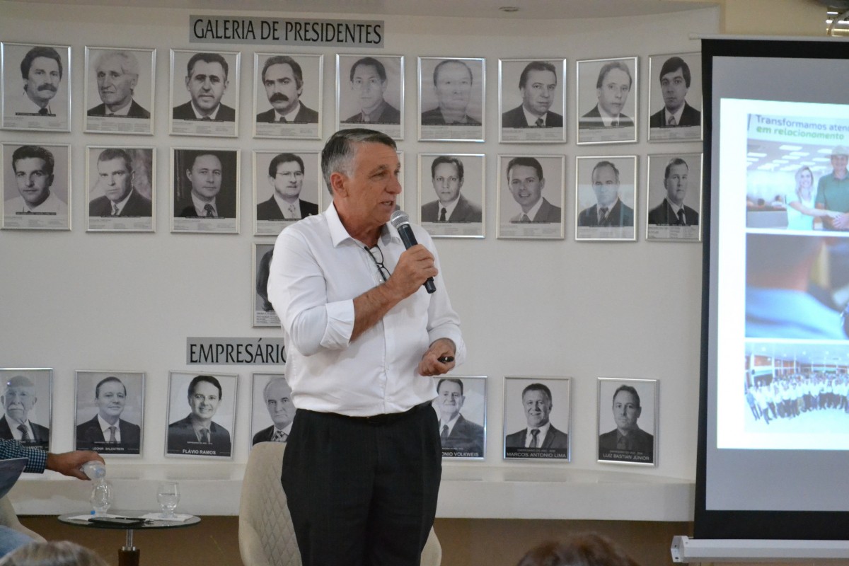 Com o objetivo de promover um espaço de aprendizado e compartilhamento de experiências, o almoço-palestra No Tom da Conversa chegou à sua nona e última edição de 2019 nesta quinta-feira, 19. Realizado pela Associação Comercial, Industrial e de Prestação de Serviço de Frederico Westphalen (ACIFW), o evento recebeu o presidente da Sicredi Alto Uruguai RS/SC/MG, Eugenio Poltronieri, que falou para cerca de 90 pessoas no salão nobre da Associação.