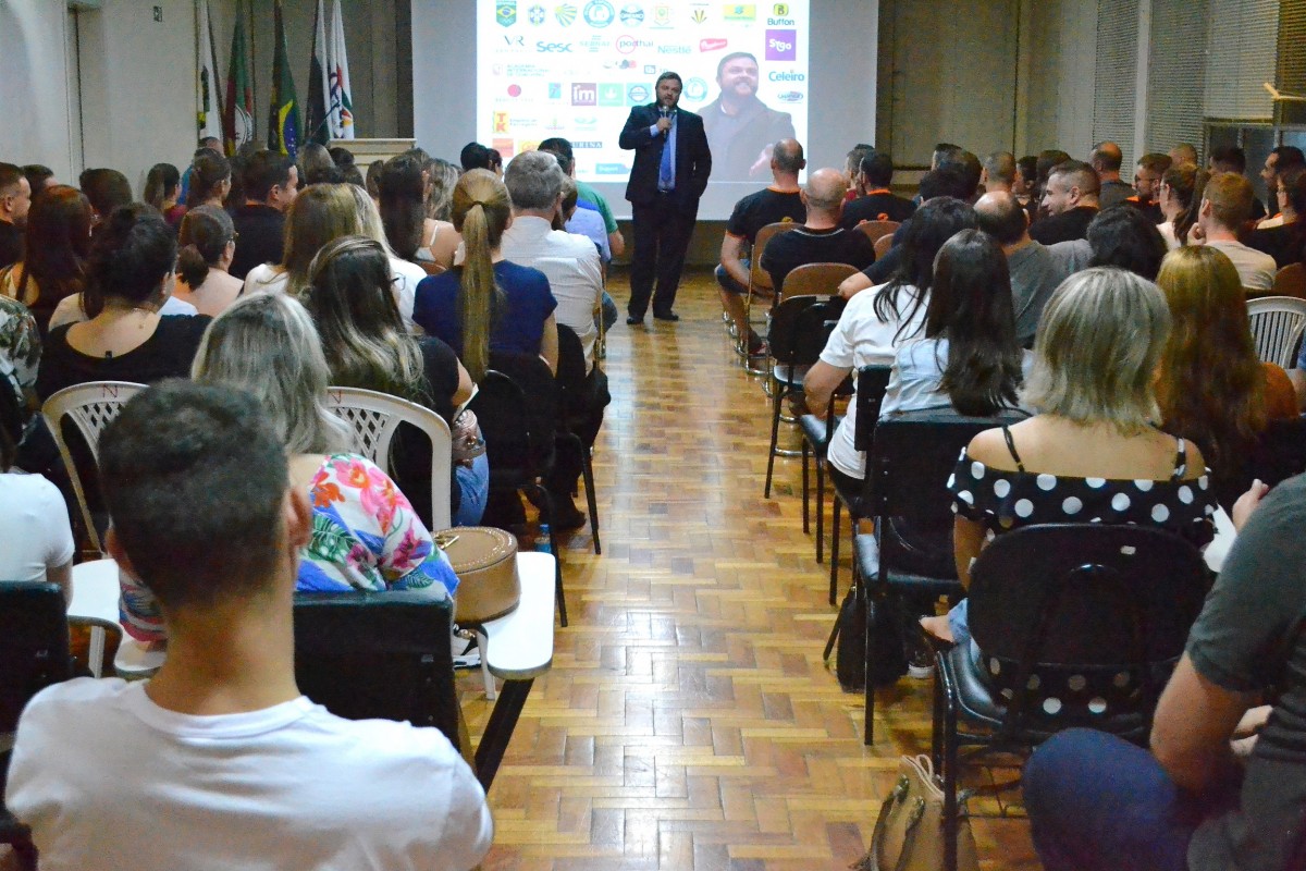 Na noite da última terça-feira, 11, mais de 100 profissionais estiveram presentes no salão nobre da Associação Comercial, Industrial e de Prestação de Serviços participando da palestra “Psicologia das Vendas”, com Ronan Mairesse. O evento, que também contou com um coffe break, foi uma promoção da ACIFW para os seus associados, que doaram 1kg de alimento não perecível como entrada para ser destinado à uma entidade do município. Além disso, a noite contou com o patrocínio do Palace Hotel, Sicredi Alto Uruguai RS/SC/MG, Supermercado Razia e Garupa.
