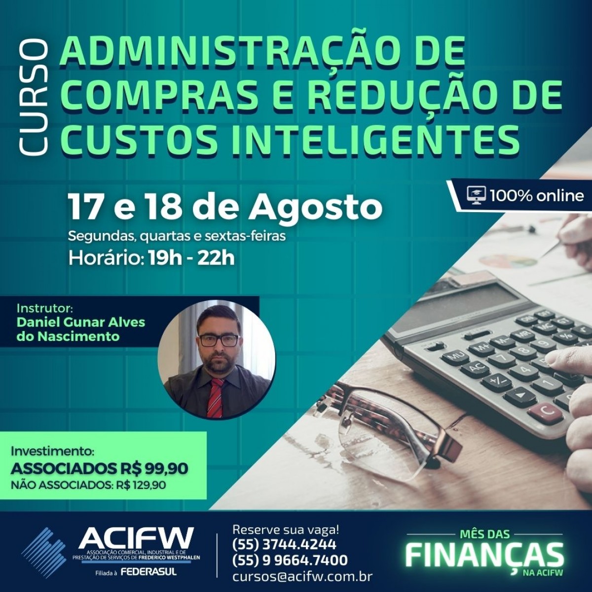 Investimento – Associados da ACIFW: R$99,90 / Não associados: R$129,90