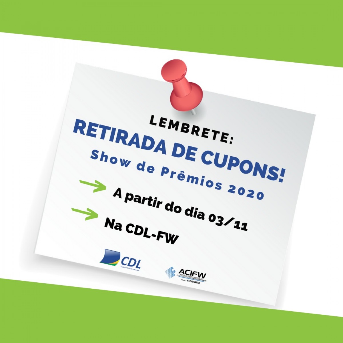 Empresas participantes da Campanha Show de Prêmios 2020 já podem retirar os materiais e cupons diretamente na CDL-FW.
