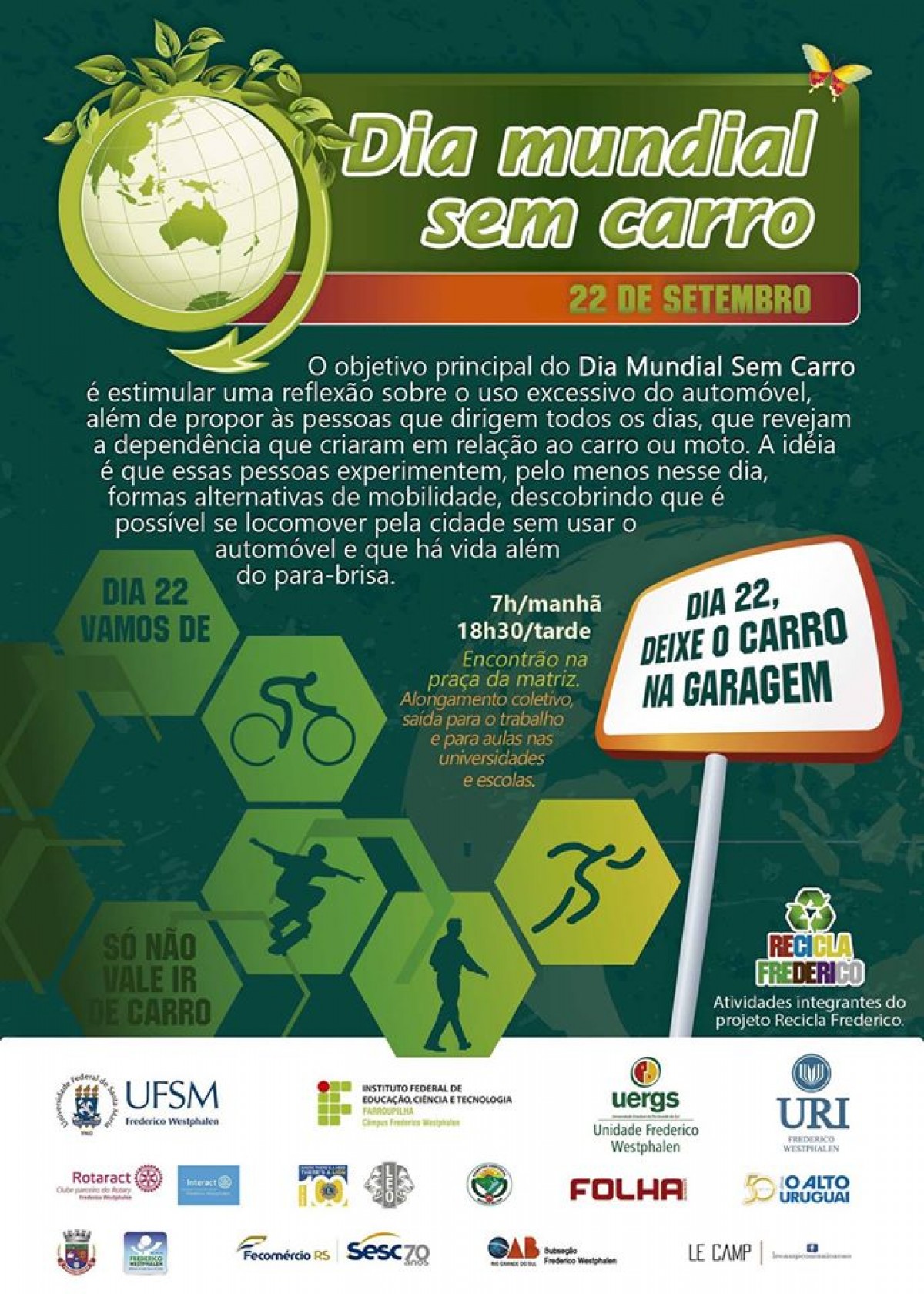 Dia Mundial Sem Carro terá atividades em Frederico Westphalen