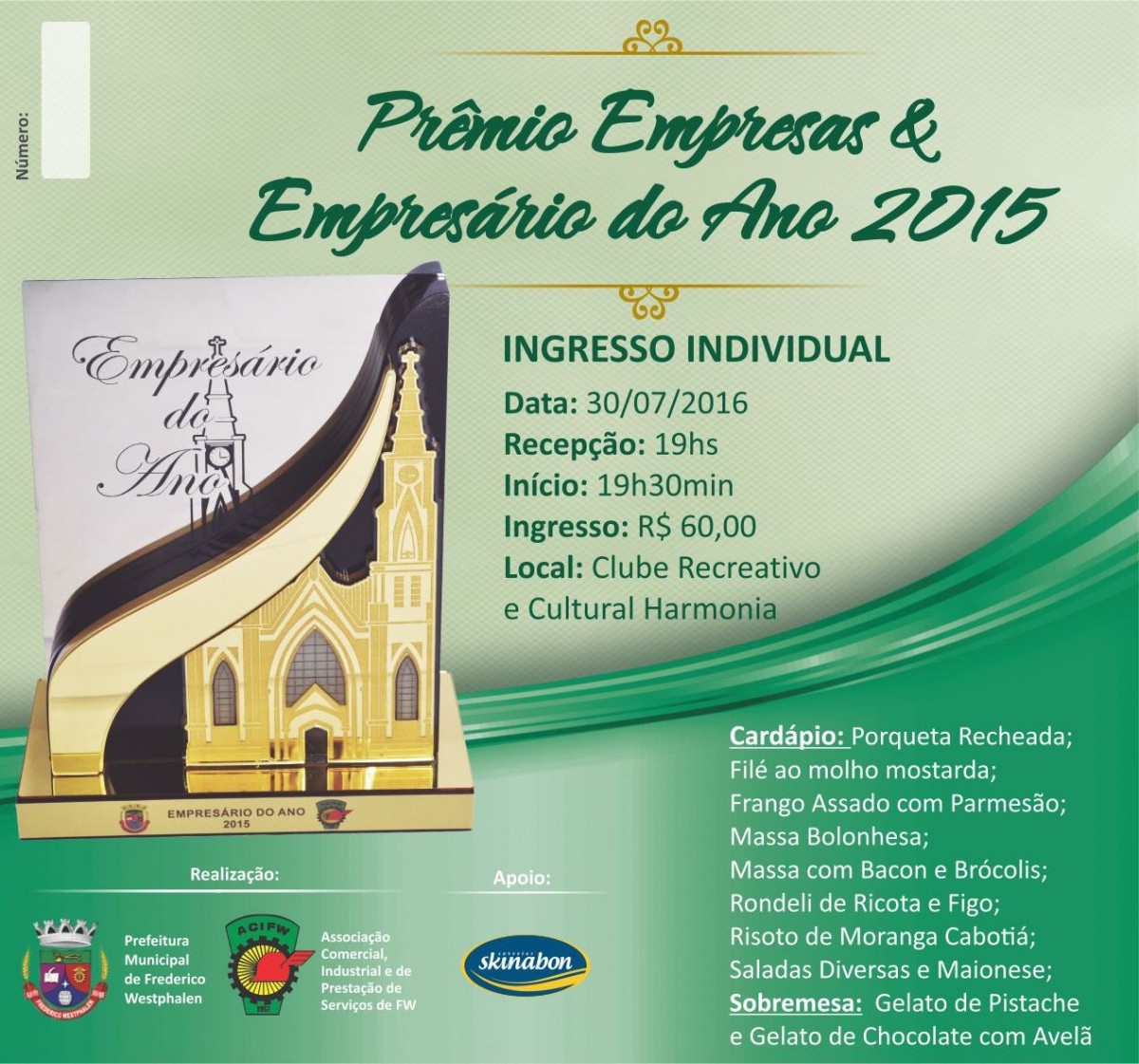 Ingressos podem ser adquiridos na sede da ACIFW ou pelo telefone (55) 3744-4244
