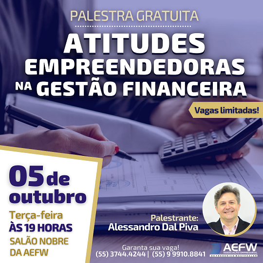 Inscrições estão abertas para a palestra que a AEFW promoverá no dia 05 de outubro. Vagas são limitadas.