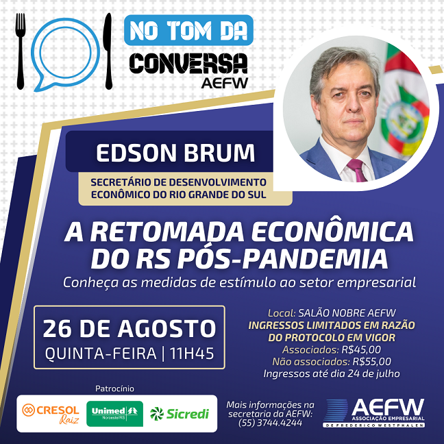 Almoço-palestra receberá o Secretário Estadual Edson Brum nesta quinta-feira para tratar sobre as medidas de estímulo ao setor empresarial