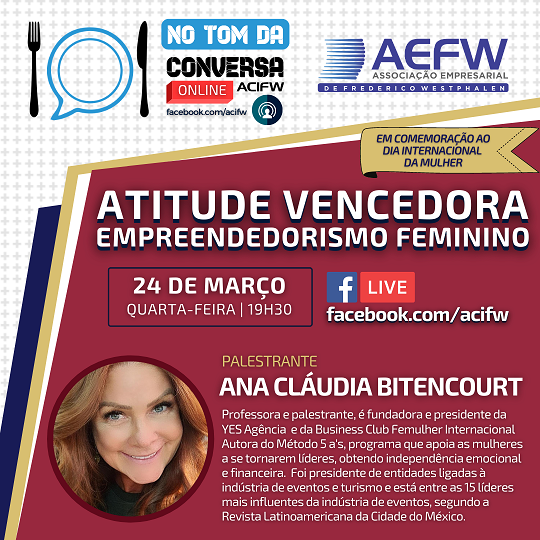 A AEFW promoverá uma palestra gratuita sobre Empreendedorismo Feminino através da sua página no Facebook