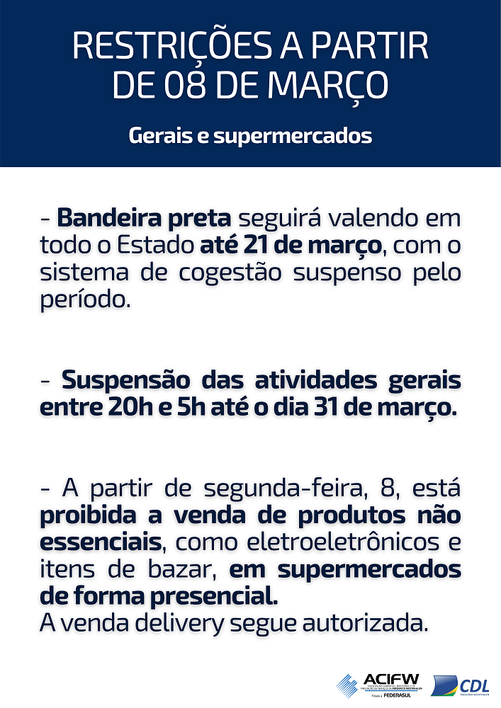 Em decorrência da bandeira preta, entidades empresariais decidiram cancelar ação que aconteceria no próximo dia 6 de março