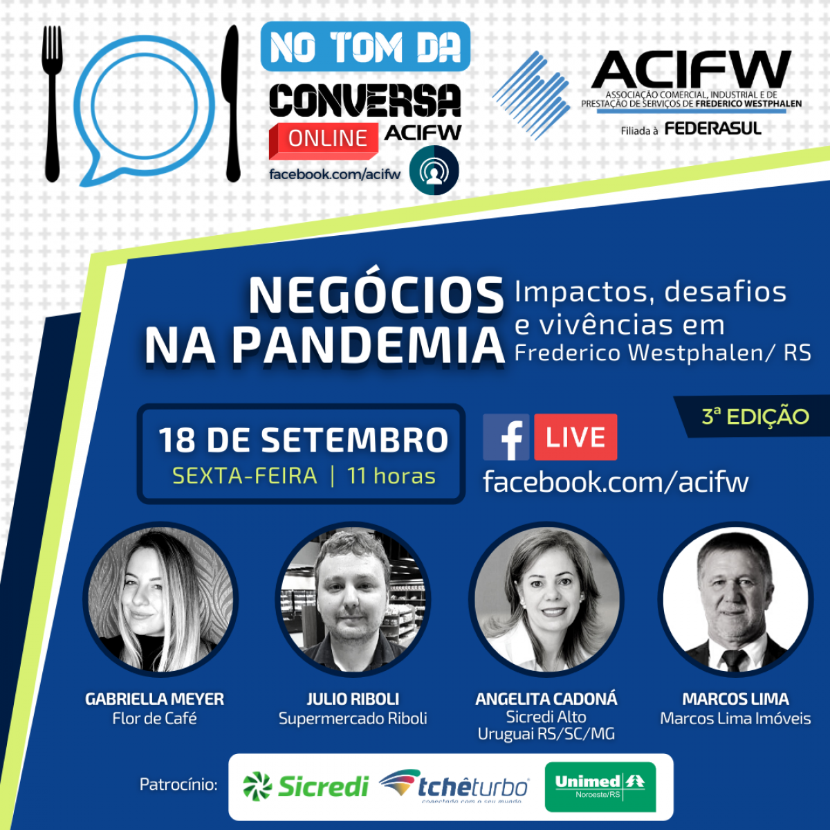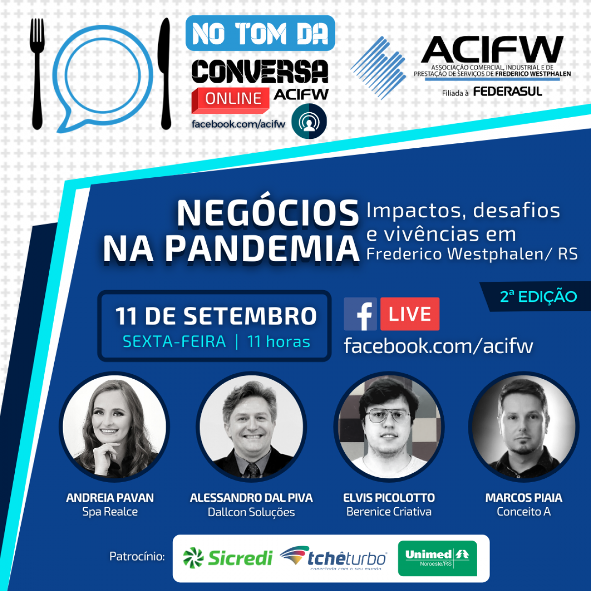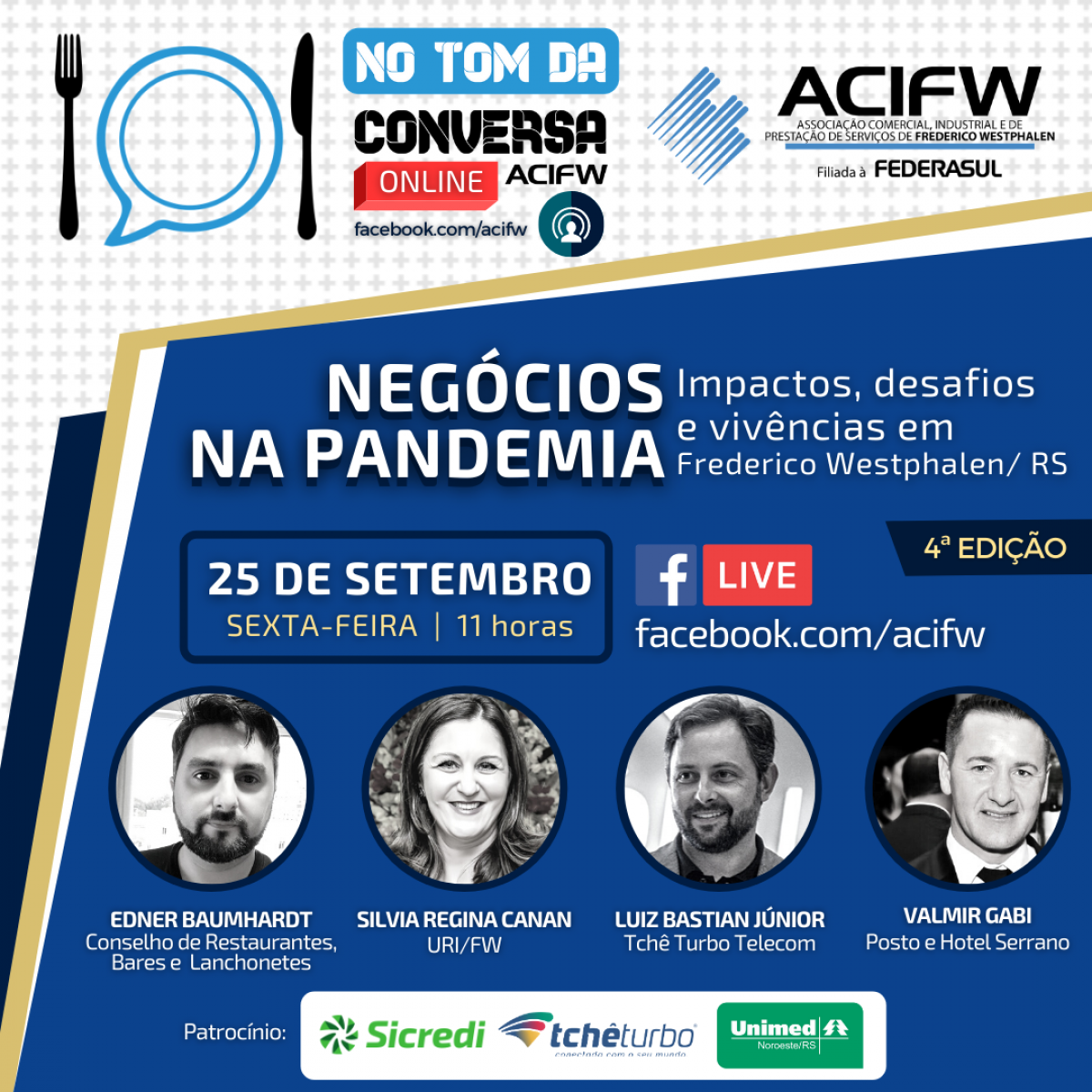 ?Objetivo é debater os desafios, impactos e experiências dos negócios locais neste período de pandemia. Quatro empresários locais irão compartilhar as vivências nos diferentes segmentos.
