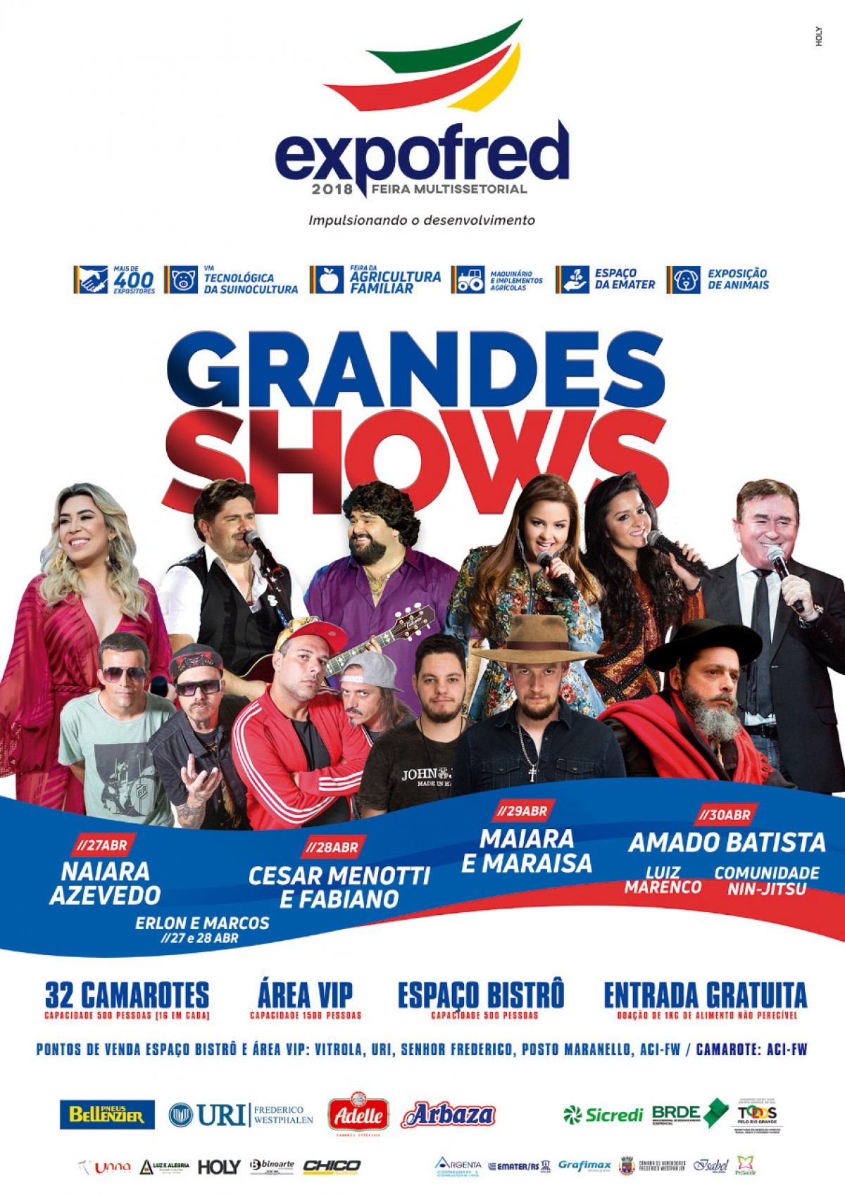 Os shows nacionais de Naiara Azevedo, Cezar Menotti e Fabiano, Maiara e Maraisa e Amado Batista já estão confirmados