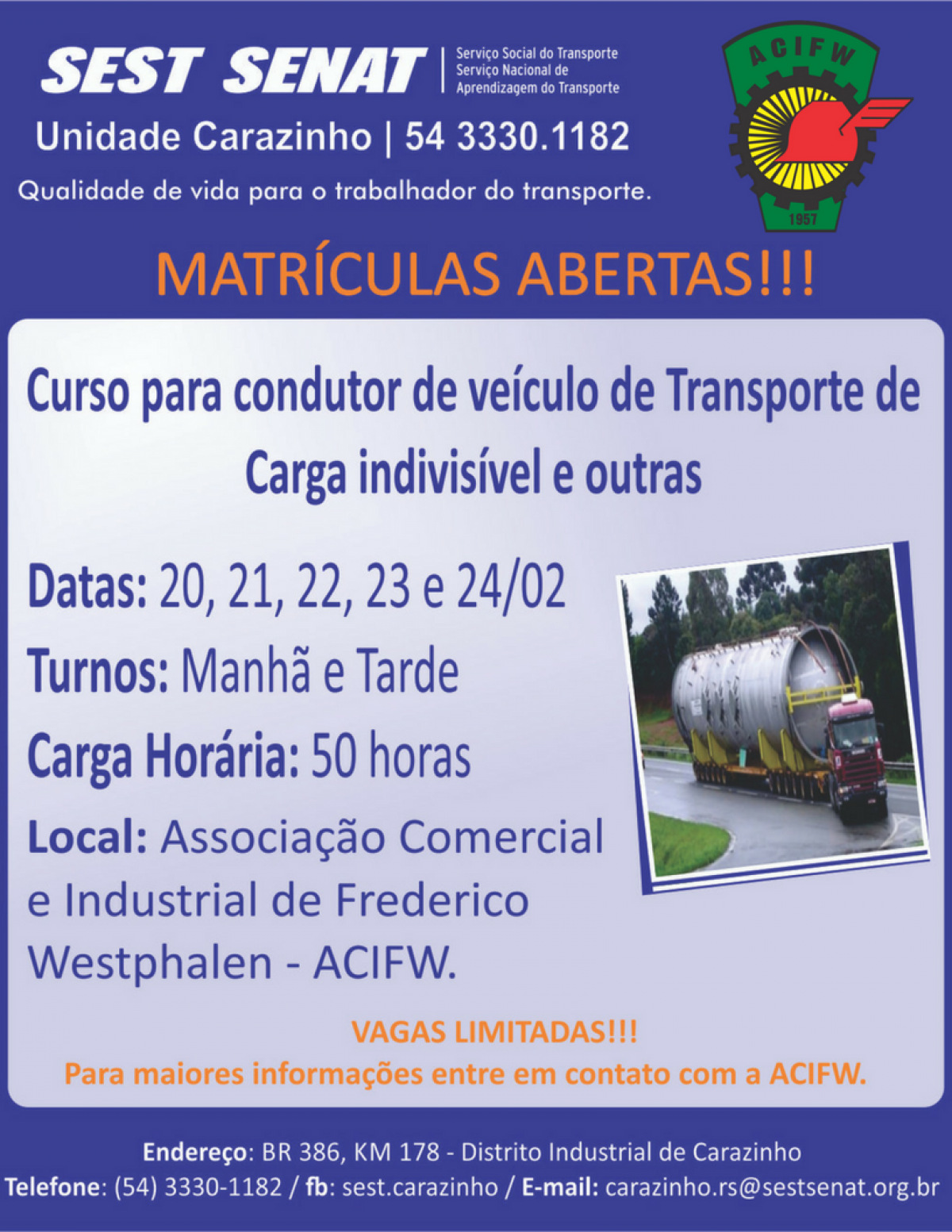 Abertas as inscrições para o curso de Cargas Indivisíveis